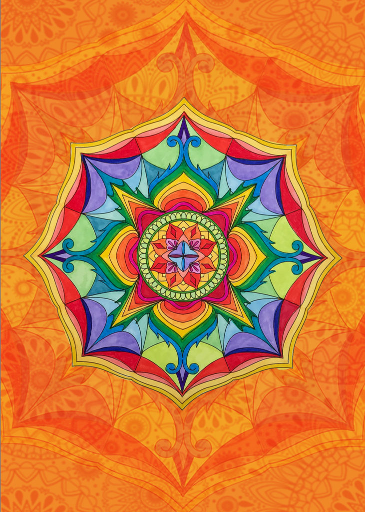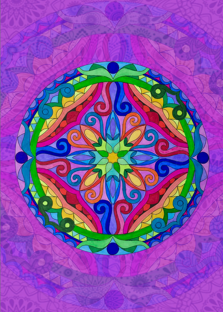 Mandalas provide a sense of immersion in color, symmetry and pattern, all of which ease the nervous system, in a highly stimulating & seemingly-chaotic world.